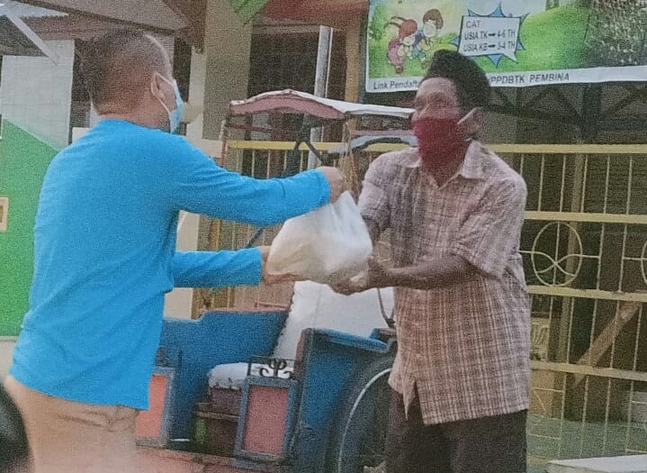Bantuan paket sembako berisi beras, gula, teh dan kebutuhan pokok lainnya disalurkan kepada warga di beberapa wilayah kecamatan yang terjangkau. Terutama warga yang beraktivitas setelah salat subuh.