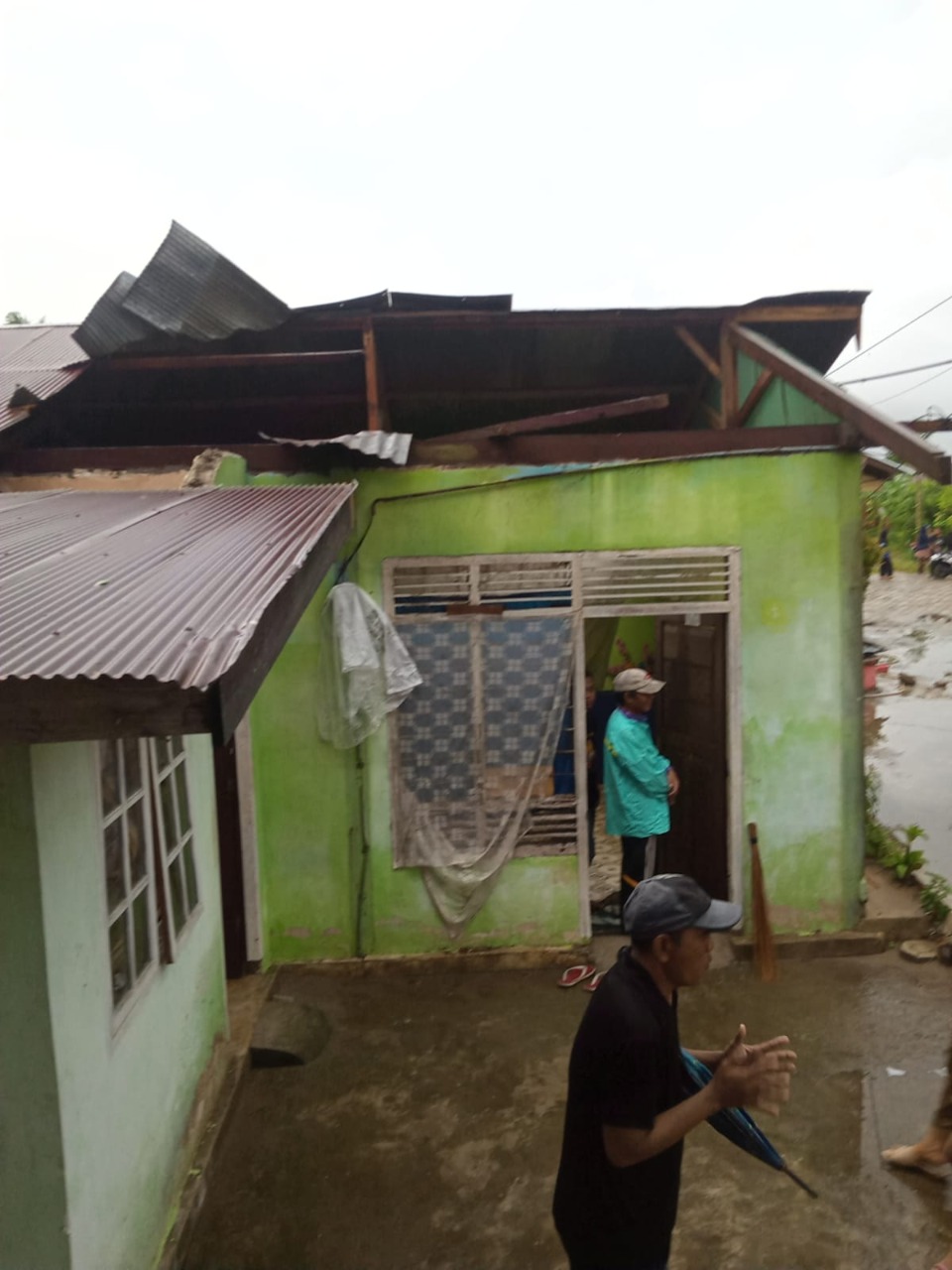 “Satu rumah dapurnya rusak parah, karena atapnya berhamburan. Serta satu rumah lainnya juga berhamburan atapnya,“ ungkapnya.