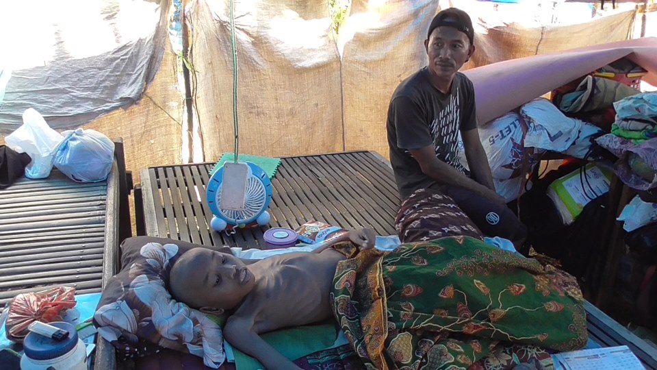 Selama berada di pengungsian, Adrian dan keluarganya bertahan di bawah tenda darurat dengan kondisi memprihatinkan. Pihak keluarga berharap, ada perhatian agar kelak Adrian sembuh dan bisa beraktivitas seperti semula. (thaya/sur/red)