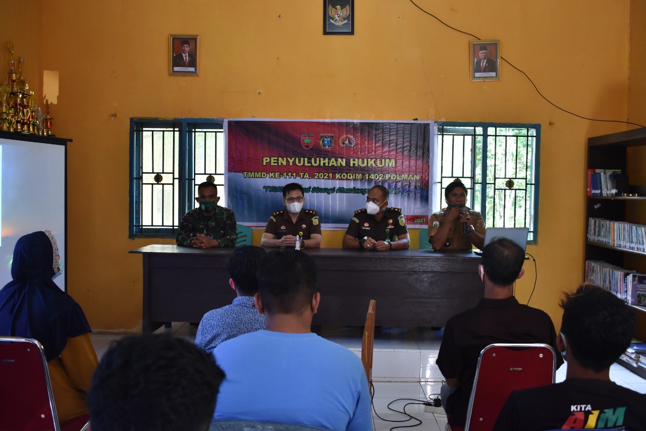 POLMAN- Kejaksaan Negeri Polewali Mandar melaksanakan penyuluhan hukum di Desa Kunyi, Kecamatan Anreapi, Kabupaten Polewali Mandar, Sulawesi Barat.