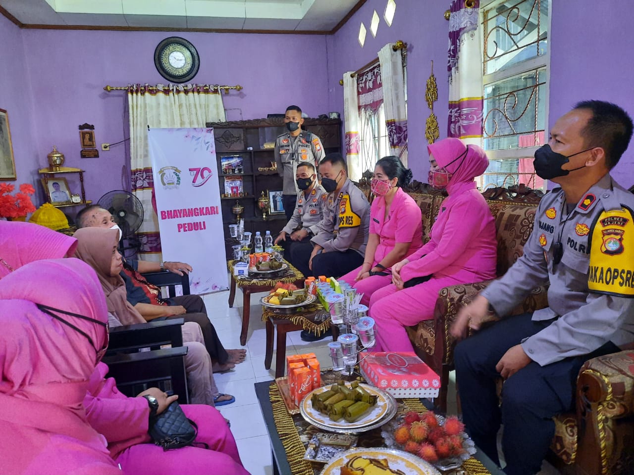 Kali ini, dalam menyambut Hari Bhayangkara ke-76, Polres Majene bersama Bhayangkari kembali melakukan aksi sosial berupa kegiatan Anjangsana dengan sasaran Purnawirawan, Warakawuri, personel Majene yang sakit parah dan masyarakat yang kurang mampu, Rabu (22/06/2022).