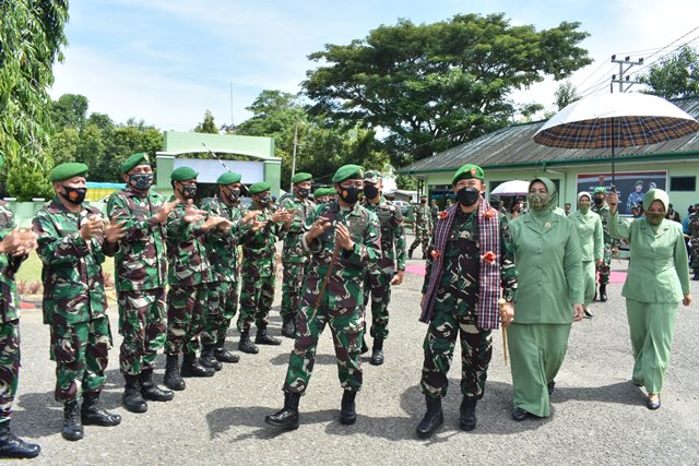Kedatangan Pangdam XIV/Hasanuddin bersama Ketua Persit KCK PD XIV/Hasanuddin, Indah Syafei. Didampingi Danrem 142/Tatag, Brigjen Firman Dahlan, Asintel Kasdam XIV/Hasanuddin, Asops Kasdam XIV/Hasanuddin dan Aster Kasdam XIV/Hasanuddin. (thaya/sur)