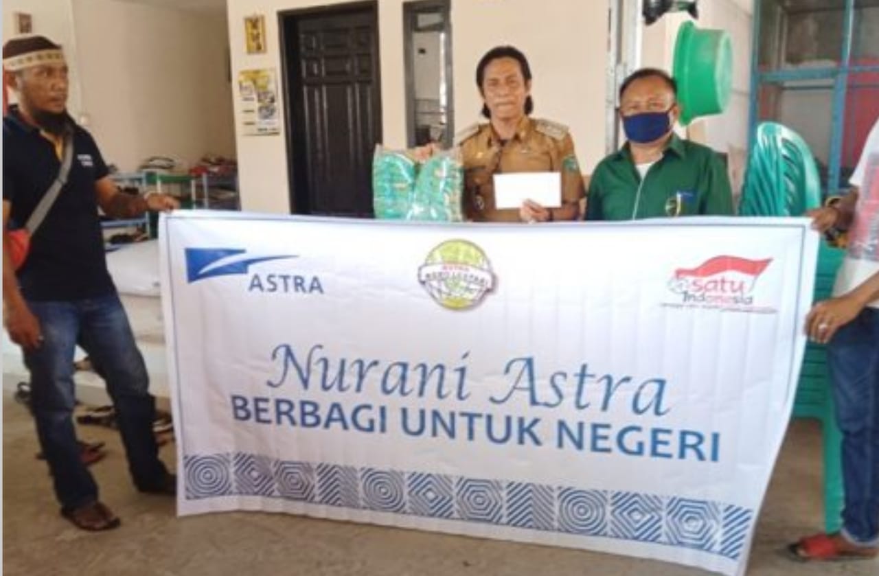 Penyaluran bantuan yang merupakan bentuk kepedulian sosial Astra Group terhadap korban Banjir bandang diserahkan langsung Community Development Officer (CDO) PT Pasangkayu Offier Paath dan diterima Ketua Kerukunan Keluarga Luwu Raya (KKLR) Kabupaten Pasangkayu, Hasbi di Sekretariat KKRL, Jalan Fatmawati, Kabupaten Pasangkayu, Kamis 23 Juli 2020.