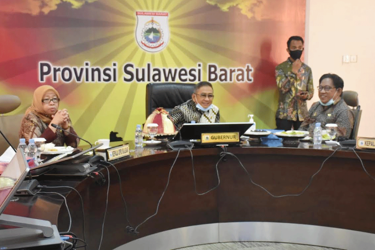 Gubernur Sulbar, Ali Baal Masdar didampingi Kepala Dinas Pendidikan dan Kebudayaan Sulbar, Prof Gufran Darma Dirawa mengikuti secara virtual dari ruang oval Kantor Gubernur Sulbar, Jumat 20 November 2020.