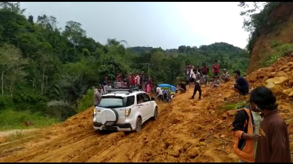 Ia mengatakan, banyak kendaraan terpaksa ditarik dan didorong lantaran kesulitan melewati permukaan jalan, karena sebagian masih tertutup tanah becek dan licin.