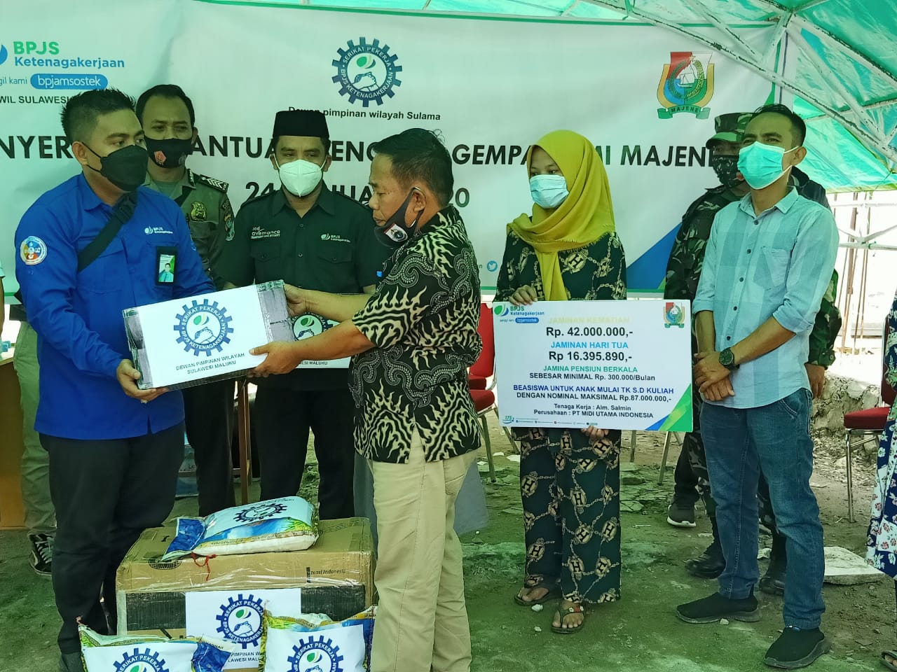 MAJENE – Badan Penyelenggaraan Jaminan Sosial (BPJS) Ketenagakerjaan Kantor Cabang Pembantu (KCP) Majene menyerahkan santunan Jaminan Kematian (JKM) Ahli waris korban gempa bumi berkekuatan 6,2 skala richter yang mengguncang Majene-Mamuju pada Kamis 14 Januari 2021 lalu.