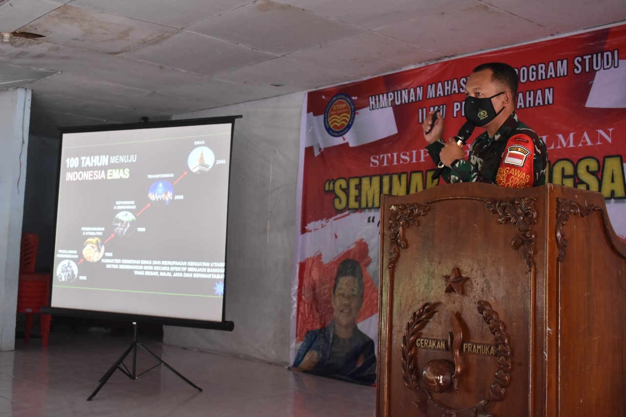 Hal tersebut disampaikan Dandim 1402 Polman, Letkol Czi Masni Etha Yanurianedi, MTr (Han), saat memberikan materi wawasan kebangsaan, pada kegiatan seminar yang digelar Himpunan Mahasiswa Program Studi Ilmu Pemerintahan Stisip Biges Polman, di Aula Cadika Polewali Mandar, Sulawesi Barat.