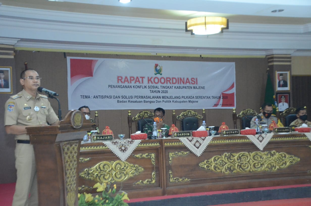 Rakor bertema Antisipasi dan Solusi Permasalahan Menjelang Pilkada Serentak 2020 itu, dihadiri Pj Sekda Majene, Dandim 1401, Kapolres Majene, Perwakilan Kejari Majene, Ketua KPU Majene, Bawaslu, Pimpinan OPD terkait, para Camat, Lurah dan Kades. (abd. hafid)