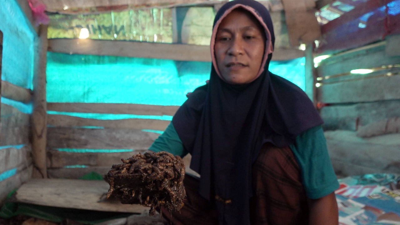 Untuk mengurusi perternakan maggot miliknya, Dewi hanya dibantu salah satu anaknya yang beranjak remaja. Sang suami bernama Sam (45 tahun), sudah empat bulan lamanya mengadu nasib di Kabupaten Morowali, Sulawesi Tengah.