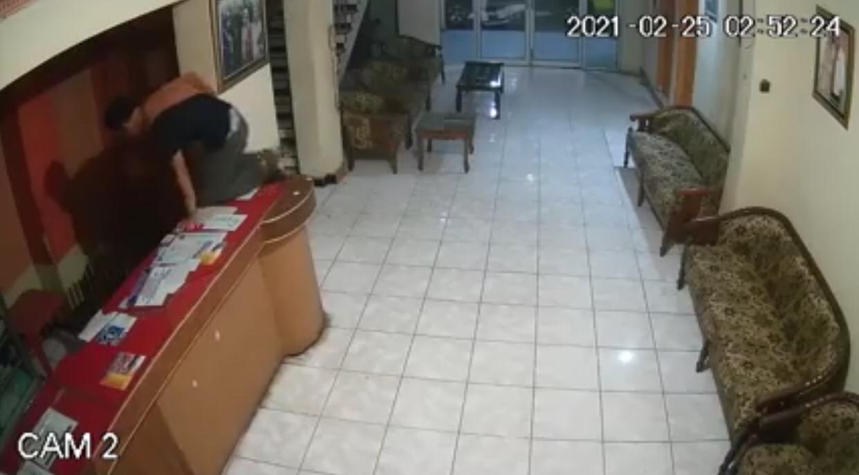 Foto: Pelaku terekam cctv hotel saat melancarkan aksinya. –ist–