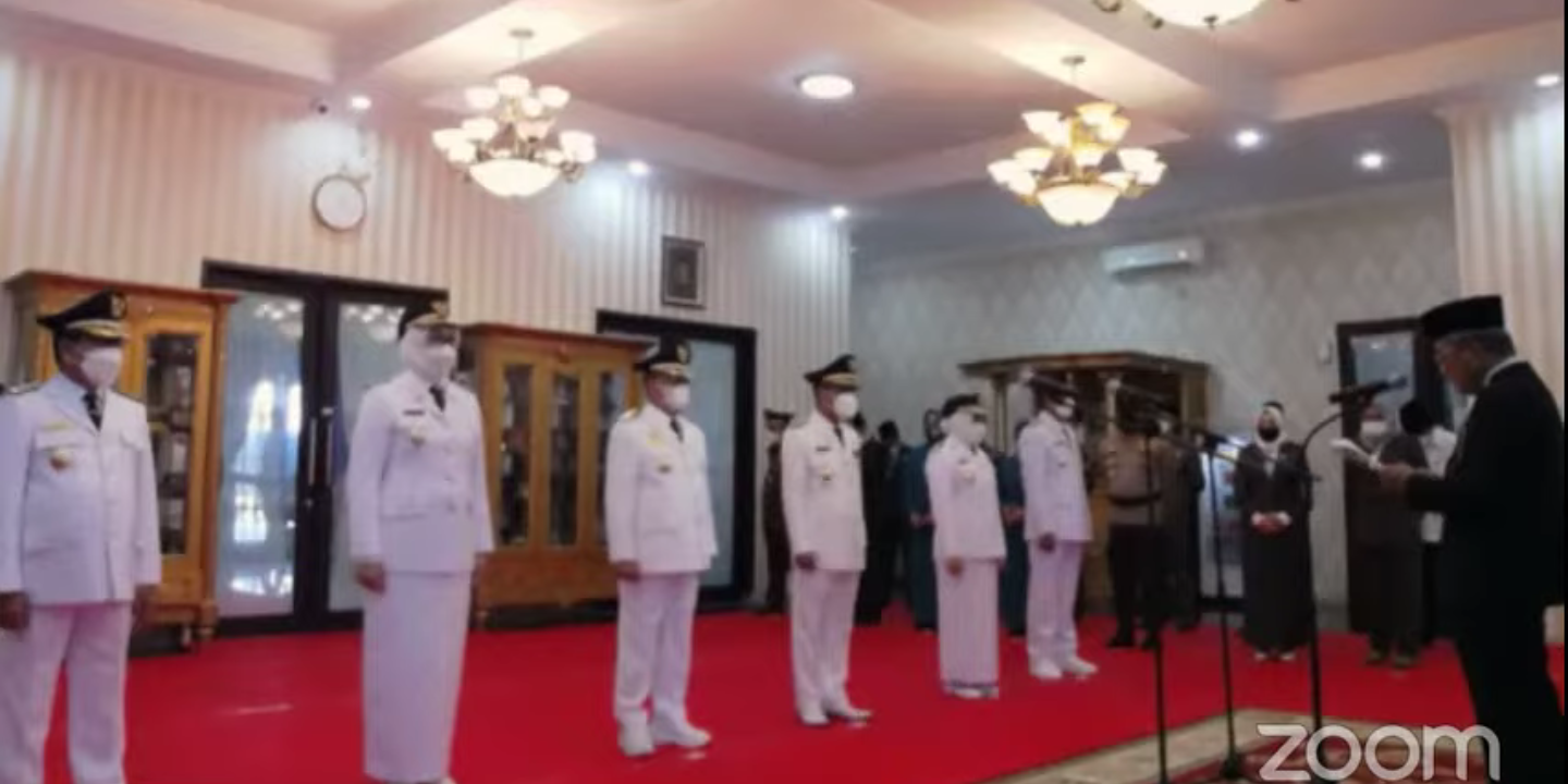 MAMUJU- Tiga pasangan Bupati dan Wakil Bupati hasil Pemilihan Serentak Tahun 2020 di Sulawesi Barat, dilantik Gubernur Ali Baal Masdar, Jumat siang (26/02/2021).