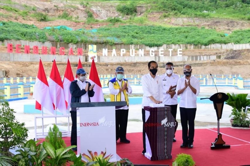 Sikka – Presiden Joko Widodo akhirnya meresmikan Bendungan Napun Gete di Kabupaten Sikka, Nusa Tenggara Timur (NTT). Peresmian ditandai dengan menekan sirene bersama dengan Menteri Pekerjaan Umum dan Perumahan Rakyat (PUPR) Basuki Hadimuljono, Sekretaris Kabinet Pranono Anung, Gubernur NTT Viktor Bungtilu Laiskodat, Wakil Gubernur NTT Josef Nae Soi, Bupati Sikka Fransiskus Roberto Diogo dan Uskup Maumere Mgr. Martinus Edwaldus pada Selasa (23/2). Peresmian ini menyusul rampungnya konstruksi dan sudah dilakukannya pengisian awal (impounding) bendungan pada Senin (28/12/20) lalu.