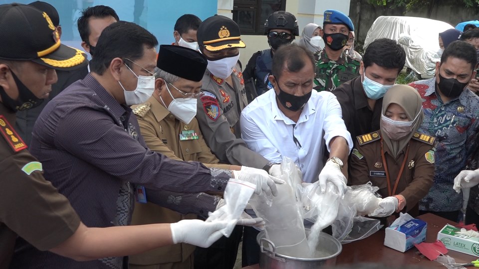 Berdasarkan pantauan, sebelum pemusnahan dimulai, terlebih dahulu dilakukan uji laboratorium, untuk membuktikan keaslian barang bukti sabu yang dimusnahkan.