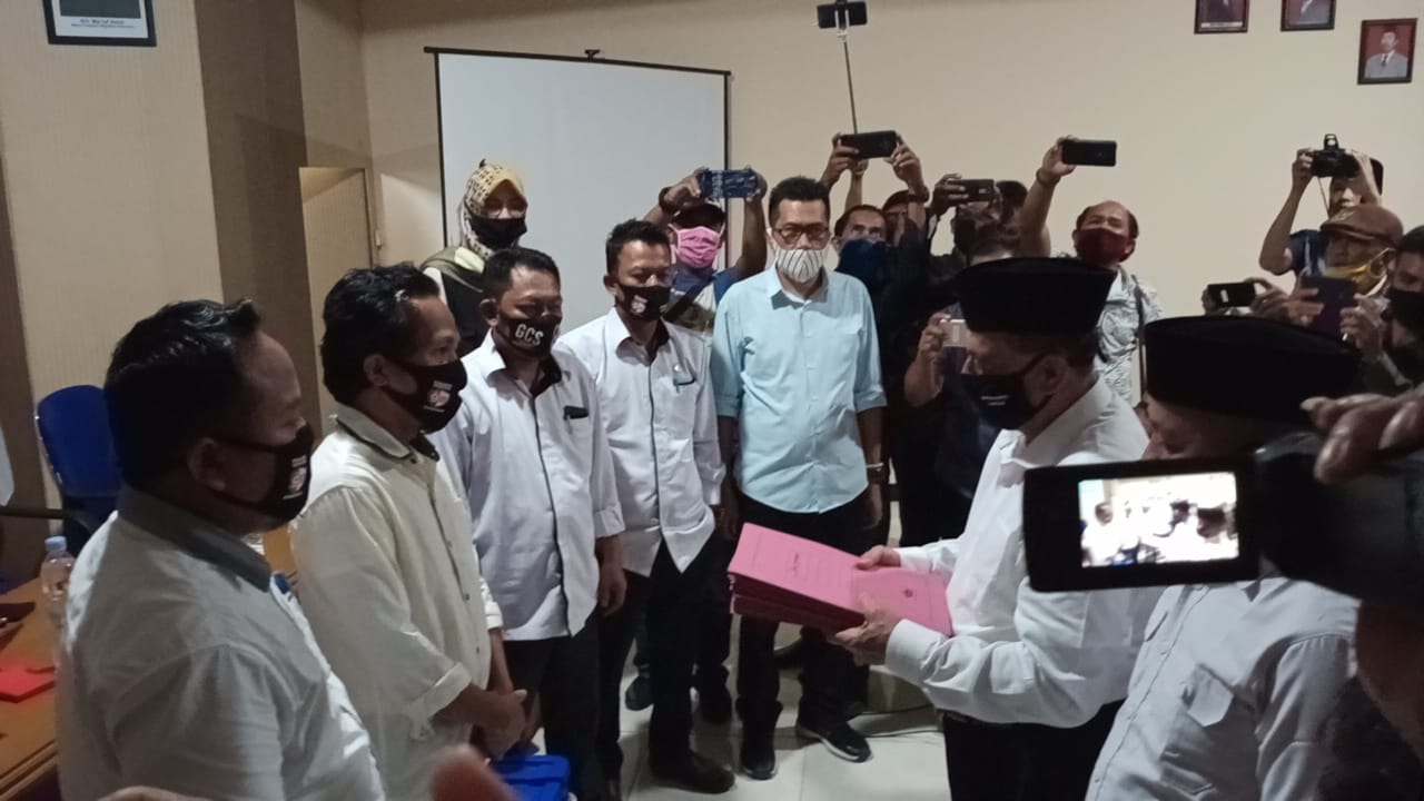 Pasangan ABRi saat menyampaikan tambahan syarat dukungan di Kantor KPU Pasangkayu, Senin 27 Juli 2020 diikuti sekira 300 orang tim pemenangan.