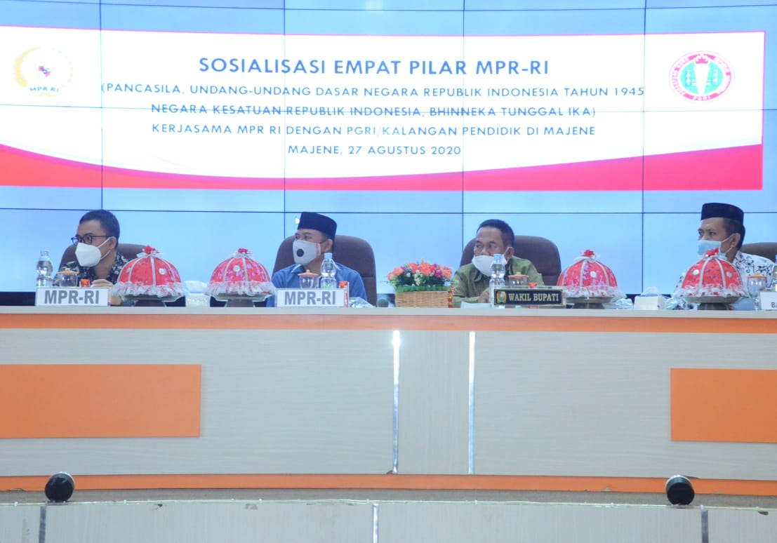 Dalam pemaparan sosialisasi empat pilar dipandu moderator Sekretaris Disdikpora Majene Syamsu Rais, dengan dua anggota MPR-RI sebagai pemateri tentang empat pilar kebangsaan, yaitu Pancasila sebagai Dasar dan Idiologi Negara, UUD Negara RI 1945 sebagai Konstitusi Negara serta Ketetapan MPR, NKRI sebagai bentuk Negara dan Bhineka Tunggal Ika sebagai Semboyan Negara.