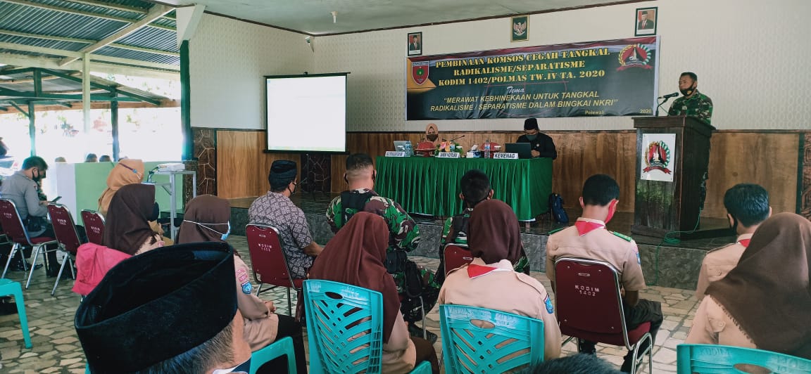 Kegiatan yang mengusung tema “Merawat Kebhinekaan untuk Tangkal Radikalisme/Separatisme dalam Bingkai NKRI” berlangsung di Baruga Mammesa, Kodim 1402/Polmas, Kecamatan Polewali, Kabupaten Polewali Mandar, Selasa (27/10/2020).