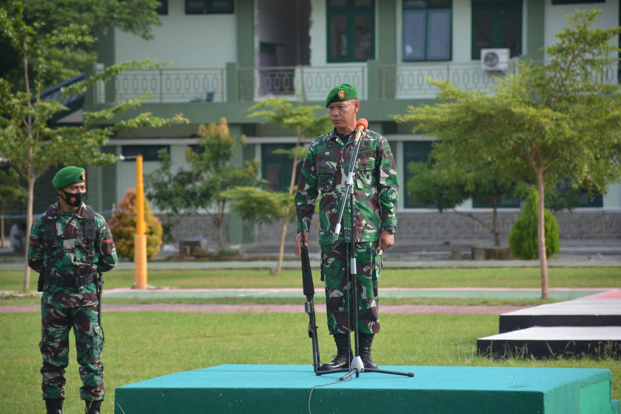 Mamuju – Apel pengecekan personil yang baru kembali melaksanakan libur bersama berlangsung di Lapangan Tammajarra Korem 142/Tatag oleh Kasi Perencanaan Korem 142/Tatag Kolonel Arh Sukma Yudha Wibawa, S.Sos. Senin (28/12/2020).