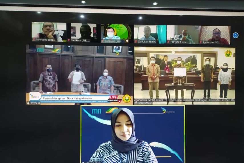 Direksi PT Perkebunan Nusantara XI menandatangani nota kesepahaman dengan Rektor Universitas Jember melalui video conference Kamis (28/01/2021).