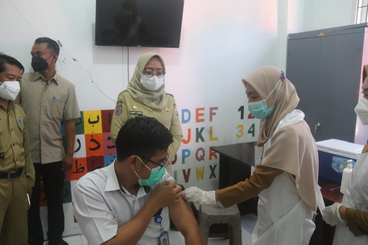 Peninjauan pelaksanaan vaksinasi ini turut dihadiri, Plt Kepala Dinas Kesehatan Sulbar Asran Masdy, Kepala Dinas Kominfopers Safaruddin Sanusi, Kepala Dinas Pemuda dan Olah Raga Sulbar Hamzih, serta Kasatpol PP dan Damkar Sulbar Bujaerami Hasan. (thaya/sur)