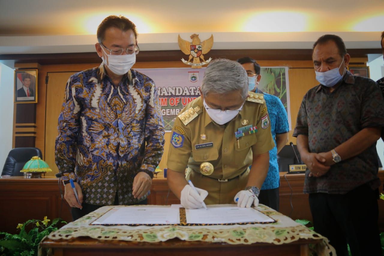 Penandatanganan MoU dilakukan oleh Gubernur Sulbar, Ali Baal Masdar dengan Direktur PT. Dwitunggal Nusa Mandiri, Petrus Chandra, di ruang rapat lantai 2 Kantor Gubernur, Senin 28 September 2020.