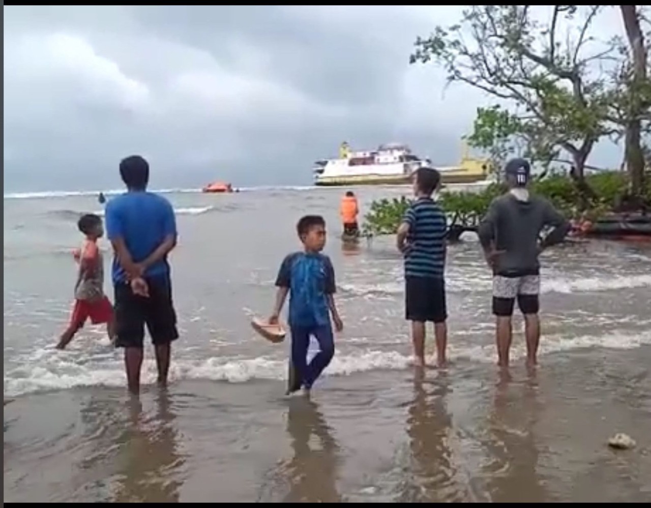 Dalam sejumlah potongan video pendek yang beredar luas di media sosial, terlihat kapal dalam kondisi miring di perairan tidak jauh dari pantai. Terlihat pula sejumlah sekoci yang dimanfaatkan penumpang untuk menyelamatkan diri berada di pinggir pantai.