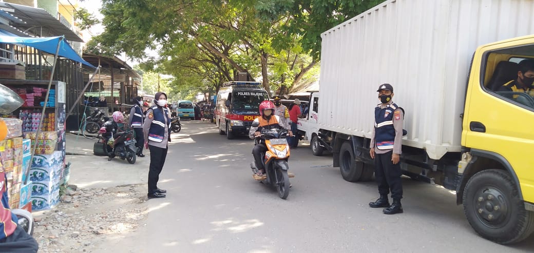 “Saat ini, kita menyasar Pasar Sentral Majene yang padat pengunjung sekaligus mengingatkan masyarakat tetap mematuhi Prokes Covid-19,” ujar Kasat Binmas AKP Soewarno Kasimin, Kamis (29/04/21).