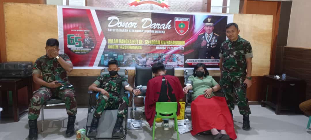 MAMASA — Dalam rangka peringati Hari Ulang Tahun (HUT) Kodam XIV Hasanuddin. Kodim 1402 Polewali Mandar (Polman) dan Kodim 1428 Mamasa mengelar aksi sosial donor darah. Kedua Kodim ini bekerjasama dengan Unit Donor Darah Palang Merah Indonesia (UDD PMI) Polman.