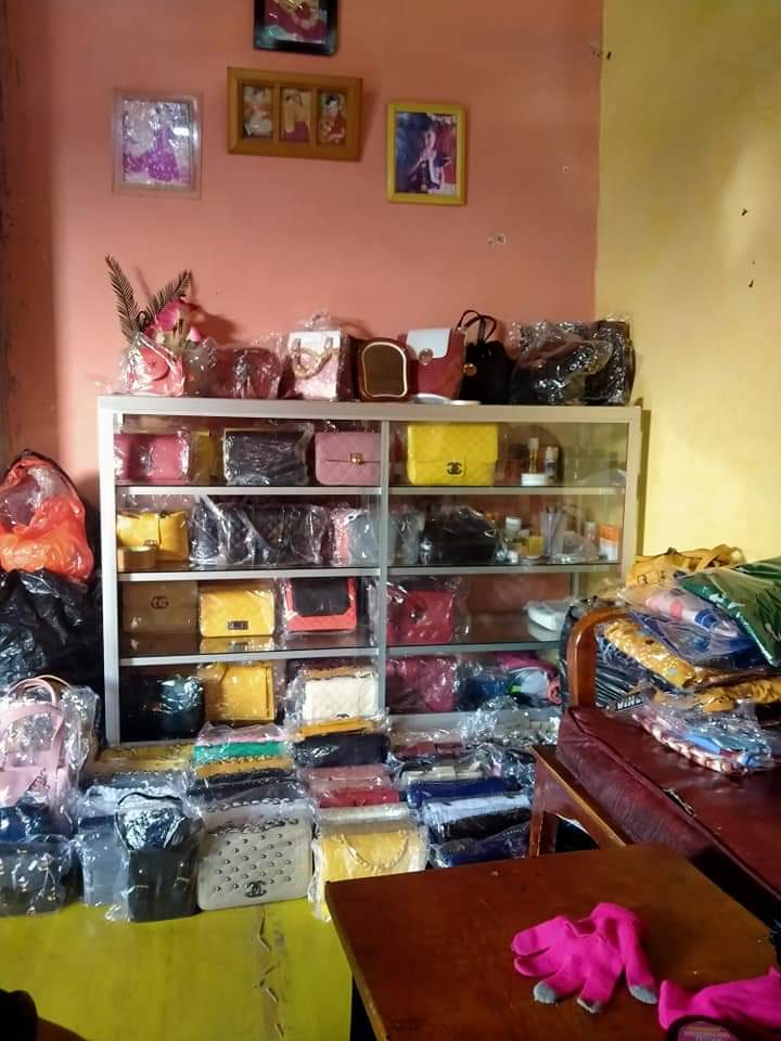 Di rumahnya di desa Tala, Bontolebang, Galesong Utara kabupaten Takalar terlihat beberapa buah tas yang diatur rapih dalam sebuah lemari etalase.