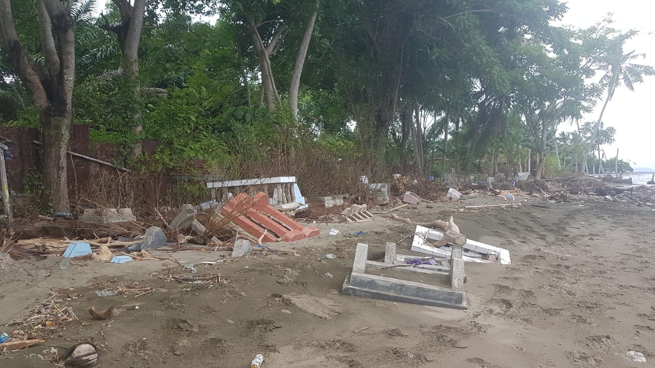 Tidak hanya mengakibatkan banyaknya makam yang terbongkar, hingga menampakkan kain kafan dan tulang belulang, hempasan gelombang tinggi membuat ratusan makam di daerah ini hilang disaput ombak, berserakan, dan tertimbun pasir.