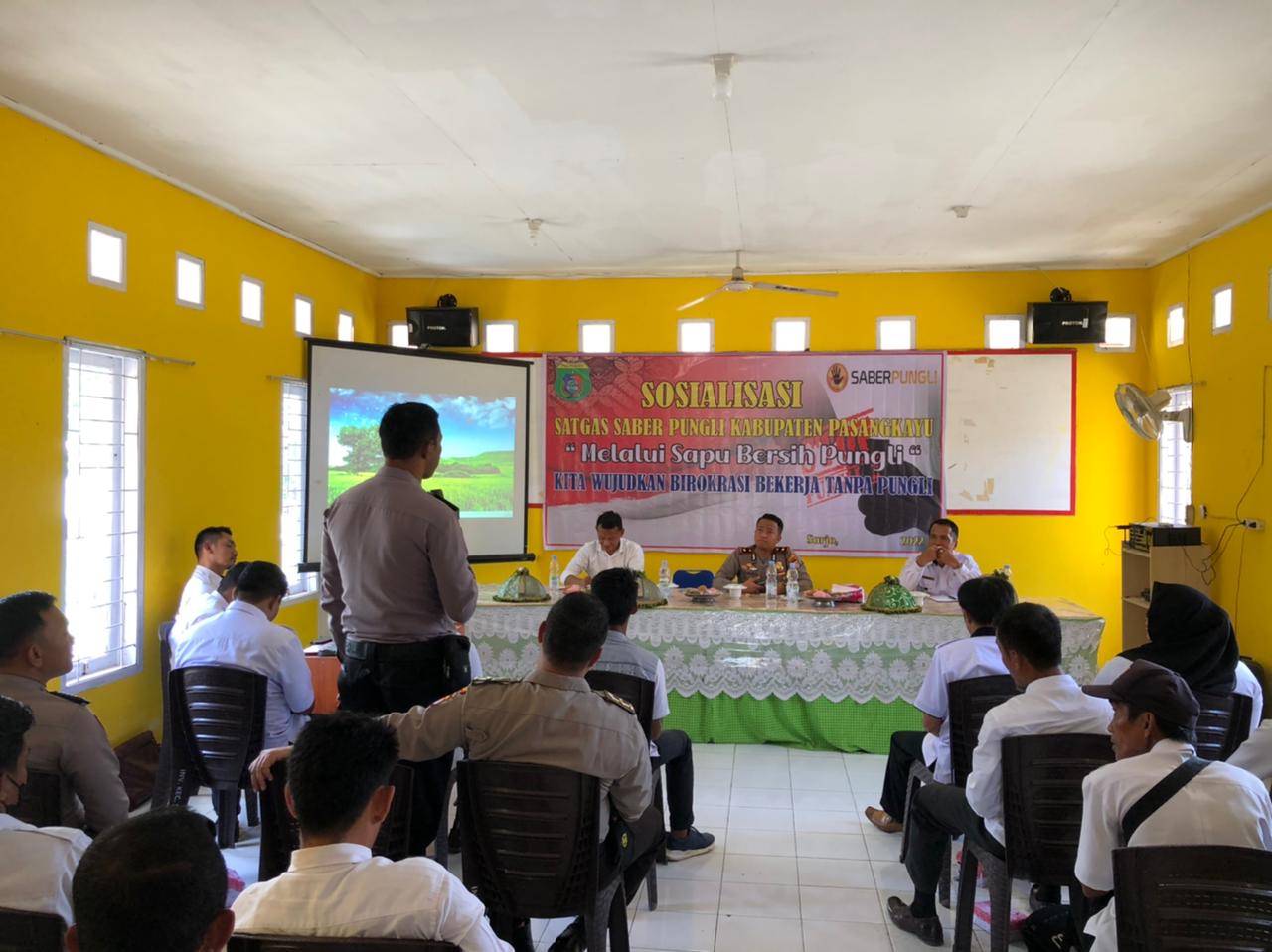 Wakapolres Pasangkayu Kompol Eduard Steffry Allan Telussa, dalam sambutannya menyampaikan, sosialisasi ini terus dilakukan pihak Polri, khususnya di wilayah Kabupaten Pasangkayu. tujunannya untuk menekan dan mencegah tindak kriminalitas. Salah satunya Pungli (Pungutan liar).