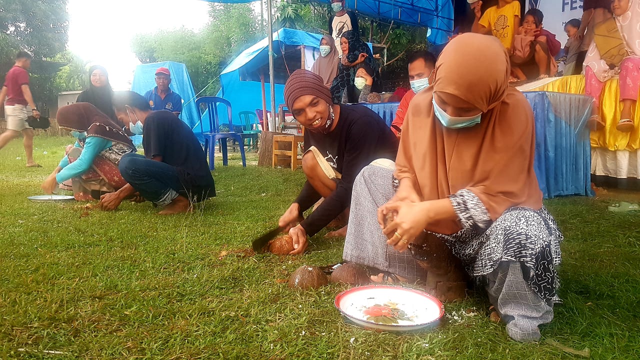 Dalam lomba ini, sang pria bertugas mengupas kulit dan membelah buah kelapa, sementara sang wanita bertugas membersihkan daging buah kelapa dari batoknya.