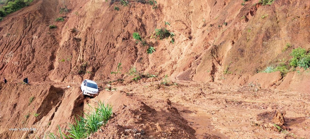 Akibatnya, sebuah mobil yang sedang melintas nyaris masuk jurang, lantaran terseret material longsor. Beruntung peristiwa tersebut tidak menimbulkan korban.