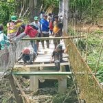 POLMAN– Proses perbaikan jembatan gantung yang menjadi akses utama menuju Desa Lenggo, Kecamatan Bulo, Kabupaten Polewali Mandar, Sulawesi Barat yang rusak akibat