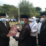 MAMUJU – Gubernur Sulawesi Barat (Sulbar) HM Ali Baal Masdar atas nama Presiden RI menyerahkan tanda kehormatan Satyalancana Karya Satya kepada tujuh