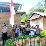 MAJENE – Kapolsek Malunda AKP Adriyan Fredrick Kopong bersama jajarannya menyerahkan bantuan beras kepada masyarakat di Desa Lombang dan Desa Lombang Utara