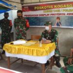 PASANGKAYU- Mencegah penyebaran Covid-19 di wilayah perbatasan Sulawesi Barat dengan Sulawesi Tengah, aparat TNI terus menerapkan disiplin prokes di Pasangkayu. Tidak henti hentinya