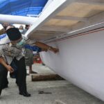 Gubernur Sulawesi Barat, Andi Alibaal Masdar, memeriksa kondisi perahu sandeq sebelum diserahkan kepada kelompok nelayan di Pambusuang, Polewali Mandar. –paceko– POLMAN- Gubernur