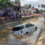 Melaju Kencang Mobil Terjungkal ke Saluran Irigasi