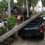 POLMAN- Sebuah mobil pikap dengan nomor polisi DP 8432 DF, ringsek akibat tertimpa pohon tumbang di Kabupaten Polewali Mandar, Sulawesi Barat. Peristiwa