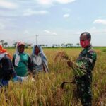 POLMAN- Babinsa Koramil 03/Campalagian, jajaran Kodim 1402/Polmas, Serda Basir melakukan pendampingan panen padi Kelompok Tani Purnama. Kegiatan yang digelar untuk memastikan ketersedian pangan