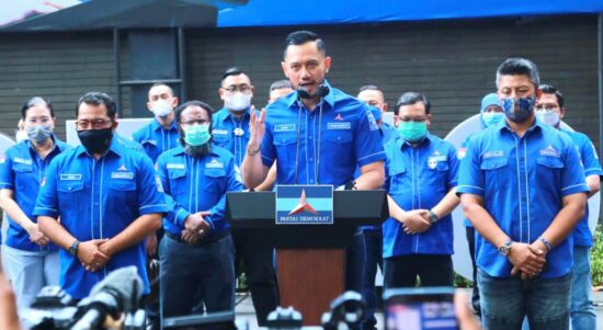 Jakarta – Ketua Umum (Ketum) Partai Demokrat (PD) Agus Harimurti Yudhoyono (AHY) dan seluruh jajarannya hasil konggres V OD tahun 2020 menyambut