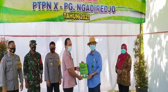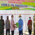 PG Ngadiredjo menyerahkan bantuan CSR pembuatan gorong-gorong untuk saluran air dan reboisasi di Desa Ngaringan Wilayah HGU Ngusri PTPN X (18/2).Acara ini