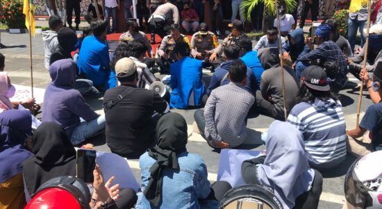 Siberindo, Mamuju – Puluhan mahasiswa yang tergabung dalam organisasi Pergerakan Mahasiswa Islam Indonesia (PMII) melakukan aksi demonstrasi di halaman Mapolresta Mamuju, Selasa
