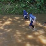 POLMAN– Karena ketiadaan jembatan penghubung puluhan anak di Dusun Sanreko, Desa Tenggelang, Kecamatan Luyo, Kabupaten Polewali Mandar, Sulawesi Barat terpaksa menyeberangi sungai