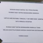 Siberindo, Mamuju – Rumah Sakit Mitra Manakarra Mamuju menghentikan pelayanan kesehatan terhitung tanggal 7 Oktober 2020 hingga sepekan ke depan. Keputusan ini dinilai