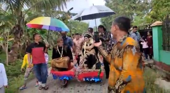 Viral, Pasangan Pengantin Baru di Polman Diarak Pakai Gerobak Dorong