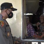 POLMAN– Kapolsek Urban Wonomulyo, AKP Adryan, meneteskan air mata saat mengunjungi pasangan ibu dan anak berusia lanjut bernama Sawiah (100 tahun) dan